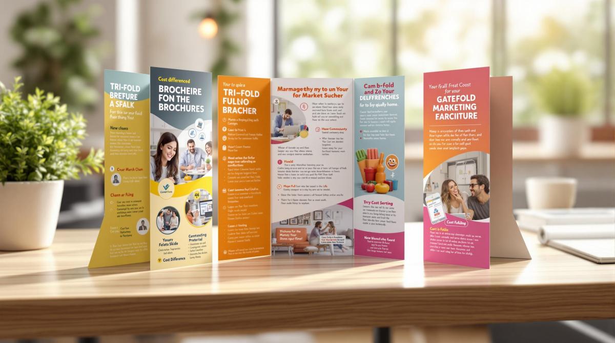 Explore the cost differences of tri-fold, z-fold, and gatefold brochures to choose the best format for your marketing needs.