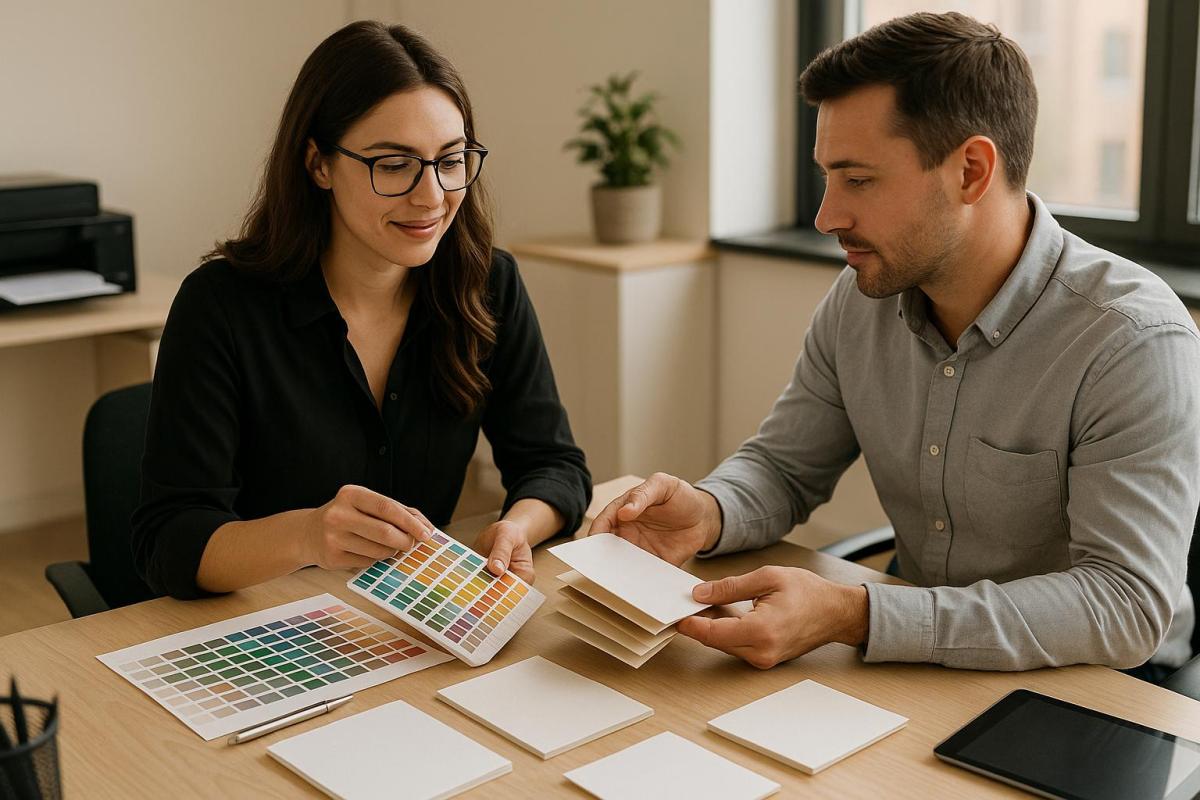 If your project involves specialty finishes like UV coating, embossing, foil stamping, or die-cutting, add 2–5 extra business days to your schedule. For example, creating business cards with an embossed logo and metallic foil could take at least a week after final approval.
